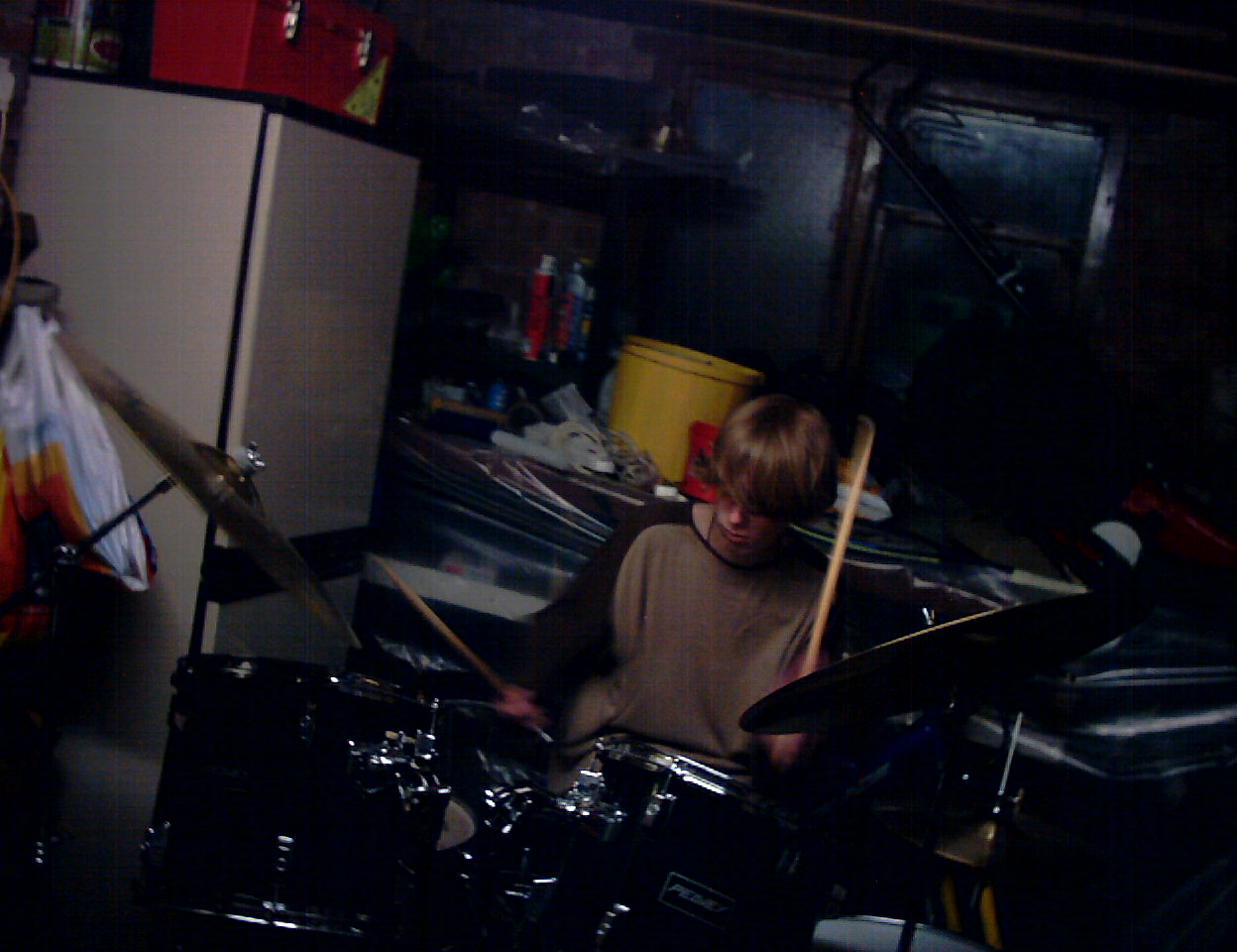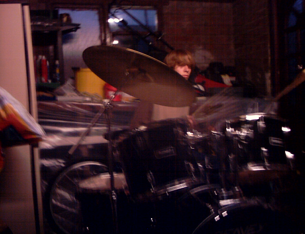 In this picture I'm playing on Lewis' drums which take refuge in the Garage from time to time |
